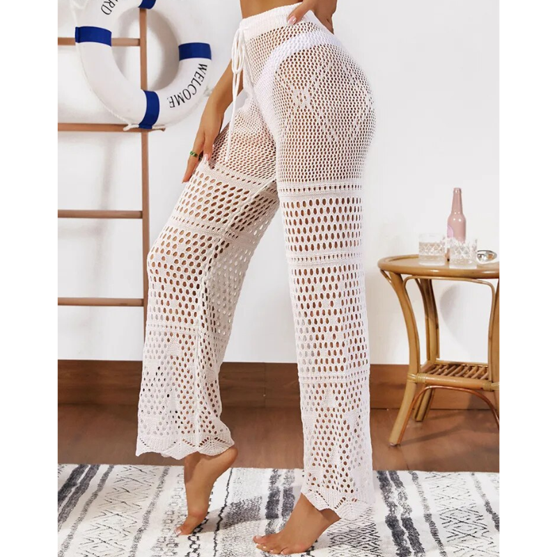 Desfrute de um verão descontraído com a Saída de Praia Elisa. Feita com tecido de lã acrílica para um toque de frescor, essa peça apresenta um ajuste perfeito graças ao cordão na sua cintura alta. Sua proposta inovadora de saída de praia calça em laise traz uma abordagem única à tendência da moda praia feminina. Sinta-se confortável e estilosa, pronta para aproveitar cada momento à beira-mar com esta Saída de Praia. Estoque limitado! compre agora mesmo.